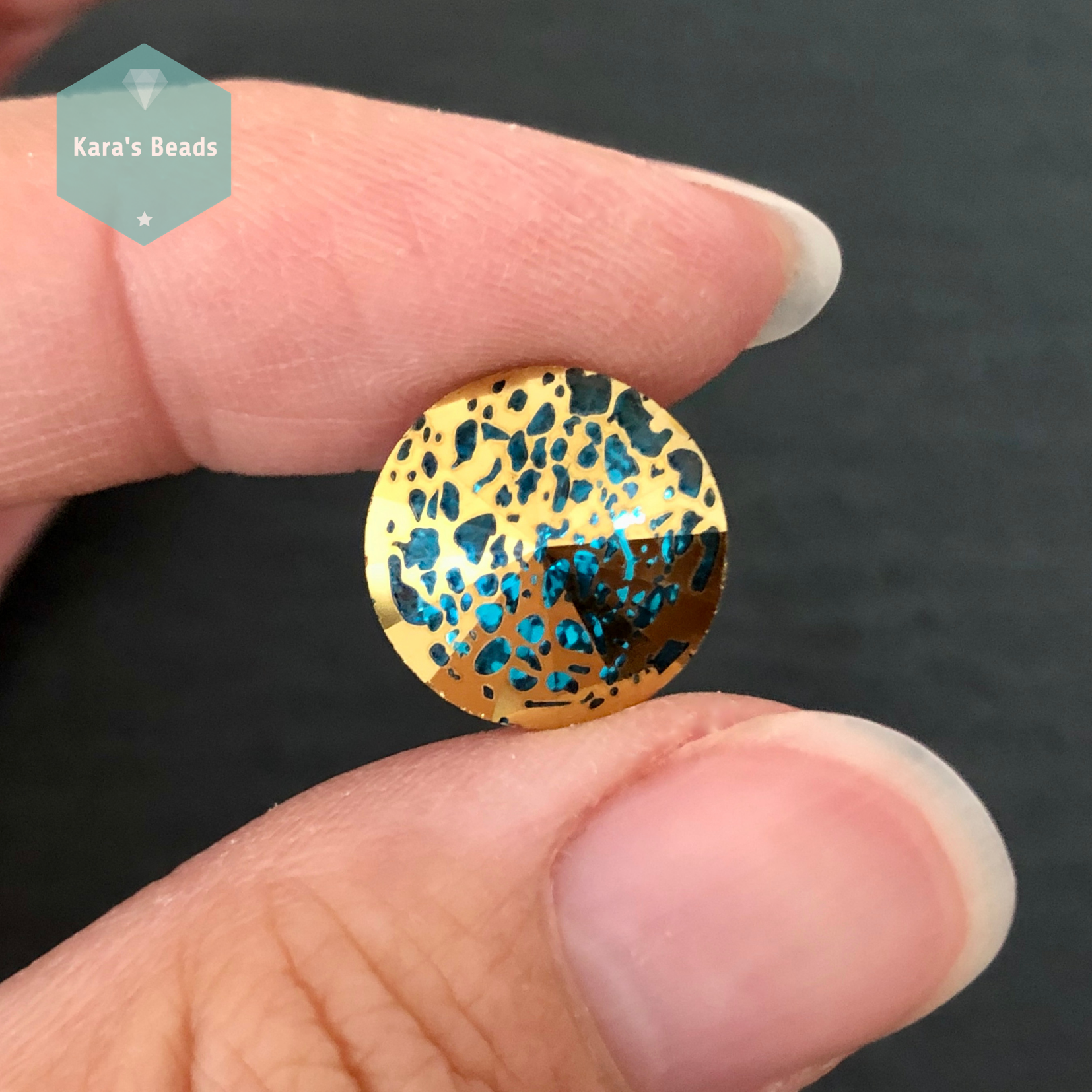 14mm Rivoli Spotty Aquamarine Gold 1 pc