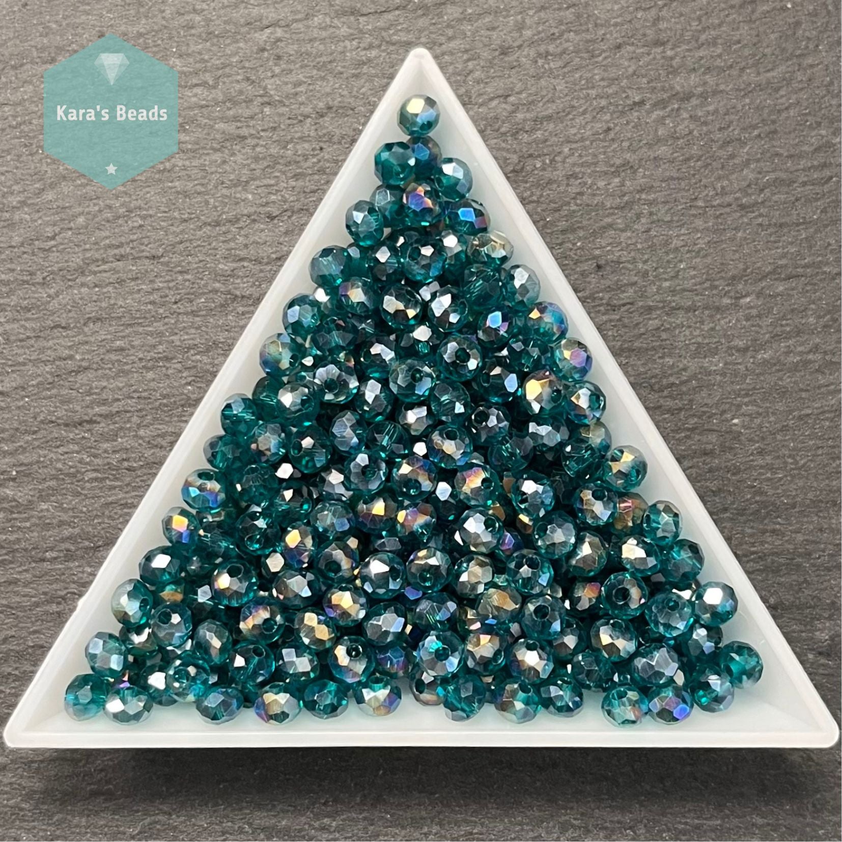 300pcs Tube 3x4mm Rondelle Beads Half Rainbow Coat Teal